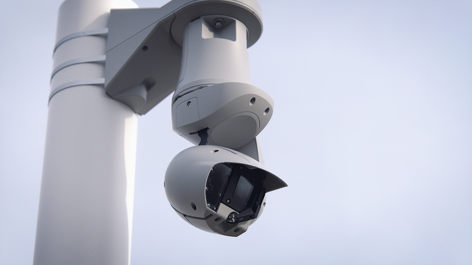 La telecamera Aero PTZ è dotata di un robusto meccanismo di rotazione e inclinazione che garantisce un movimento preciso in presenza di venti fino a 270 km/h, superiore alla classificazione della velocità del vento Saffir-Simpson per i cicloni e gli uragani di categoria cinque.
