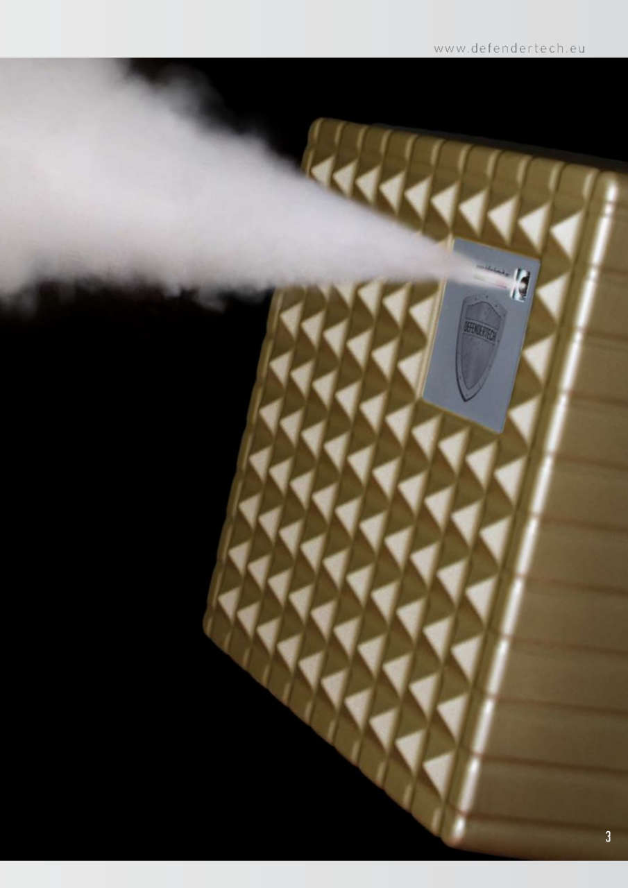 Il sistema DT-800Plus di DefenderTech con un singolo sparo da 60 secondi può saturare ambienti fino a 100 metri quadri (altezza 3 metri) e nei minuti successivi si espande fino a 830 metri cubi. Il serbatoio contiene fluido sufficiente per 6,5 minuti di erogazione raggiungendo una saturazione massima di 4.980 metri cubi.