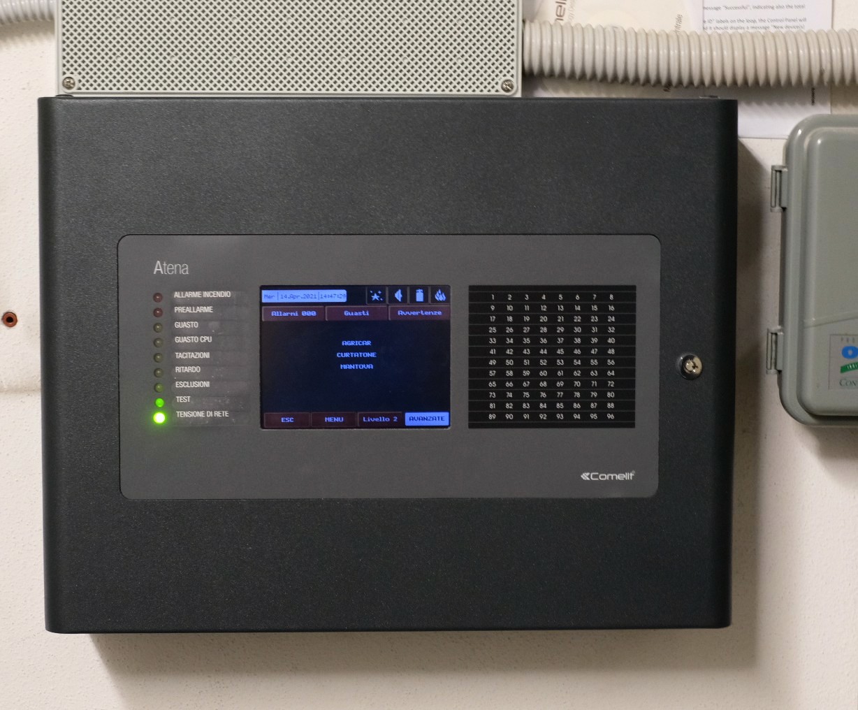 Il sistema installato è altamente tecnologico e affidabile, costituito da una centrale antincendio indirizzata Atena che consente di interfacciare al sistema di rilevazione incendio una zona convenzionale alimentata separatamente.