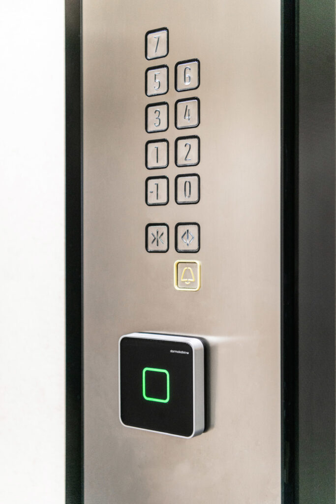 Le tecnologie di accesso sono inoltre state integrate con il sistema di controllo degli ascensori, in modo che gli utenti possano accedere ai piani solo secondo specifiche autorizzazioni.