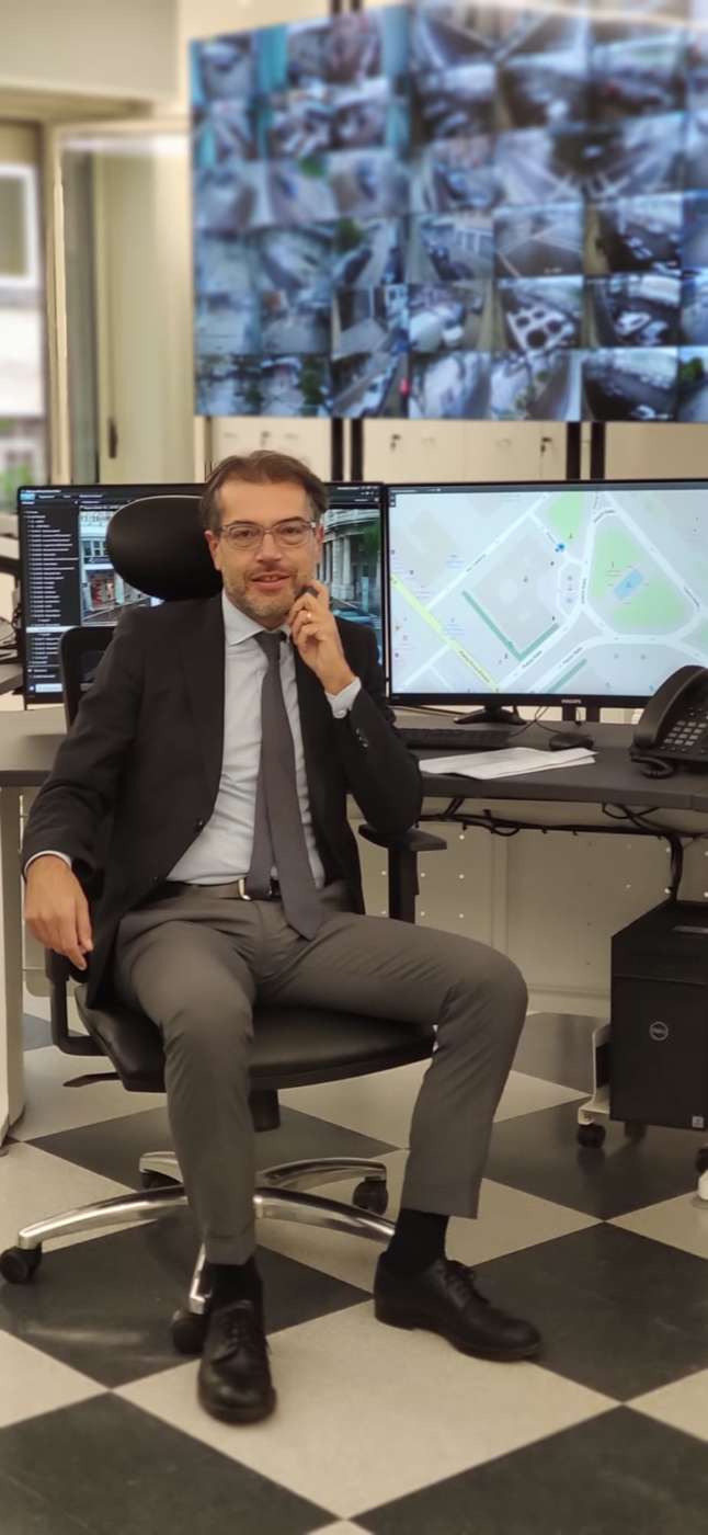 Adelchi Sulpizio, assessore alla Sicurezza urbana, illustra le funzionalità del nuovo impianto di sorveglianza e i possibili ambiti di sviluppo.