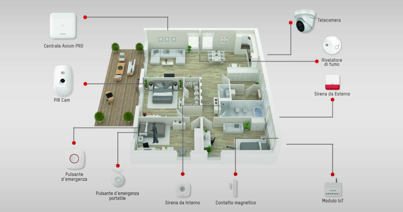 La nuova soluzione Hikvision integra nativamente la tecnologia video proprietaria dell’azienda e, tramite app specifiche per l’installatore e l’utente finale, interagisce con diverse tipologie di dispositivi e accessori. Il suo cuore è la centrale Axiom PRO, che supporta fino a 96 ingressi wireless, comunicando allarmi e altre notifiche tramite LAN, Wi-Fi, GPRS e 3G/4G per mezzo di notifiche push, sms e chiamate vocali. I dispositivi, che si installano facilmente scansionando un QR Code con l’app Hik-ProConnect, interagiscono tra loro attraverso il protocollo radio proprietario a doppia frequenza TRI-X e Cam-X che, insieme alla tecnologia Frequency Hopping multicanale, fornisce un bus radio protetto che consente al sistema la programmazione e la supervisione assicurando una comunicazione pulita fino a 2.000 metri di distanza.