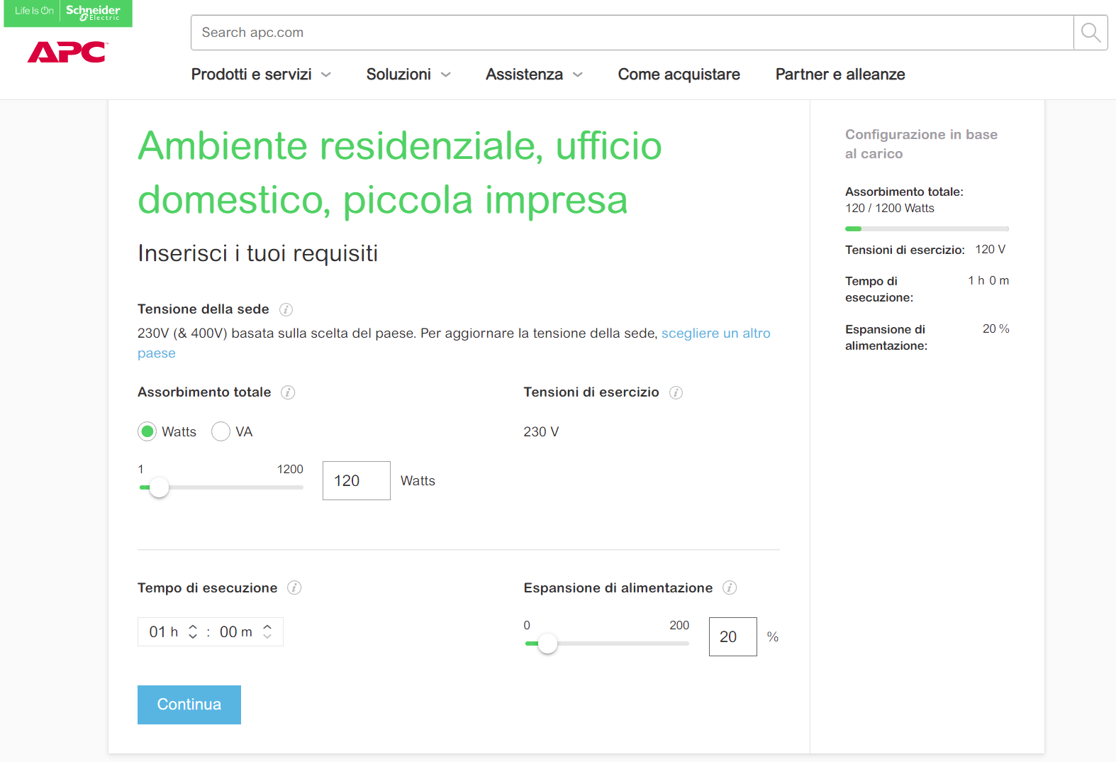 Il sito web di APC mette a disposizione di installatori e utenti un tool dedicato per il calcolo dell’autonomia di un UPS in base al carico