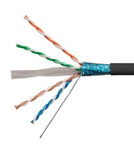 - F/UTP: cavo schermato a livello generale (sotto- guaina) con nastro che avvolge le quattro coppie;