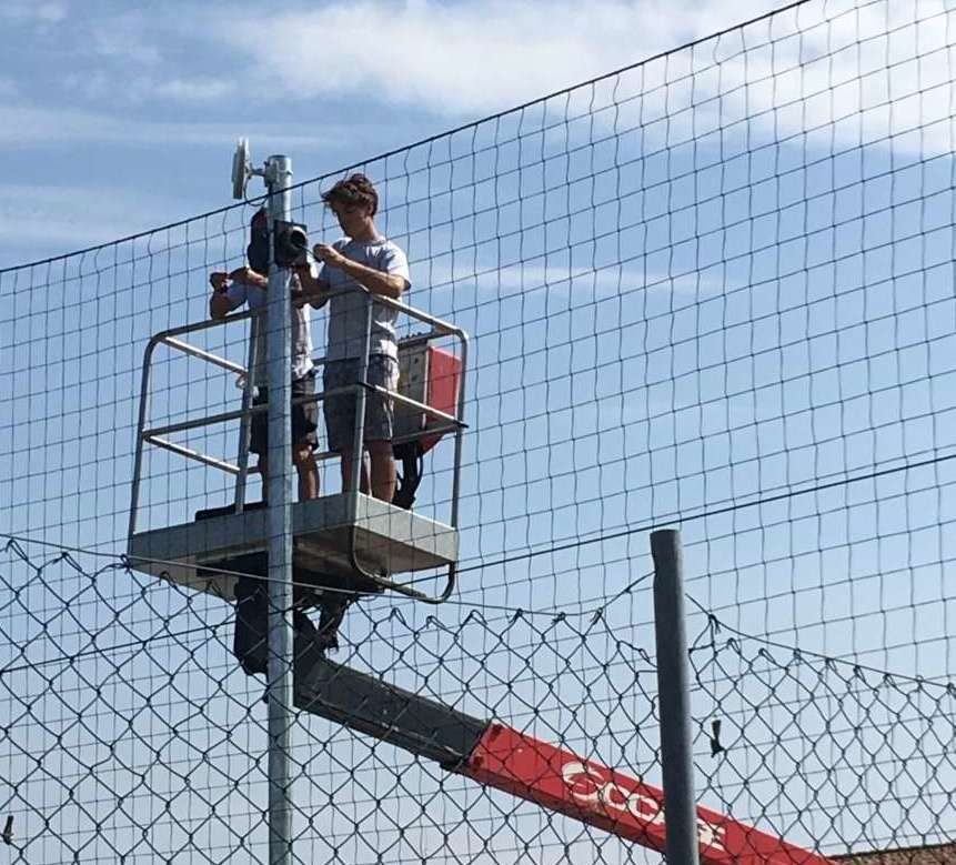 Mauro Abbadati e Matteo Caleffi al lavoro per la realizzazione del sistema di videosorveglianza comunale a Pomponesco (MN)