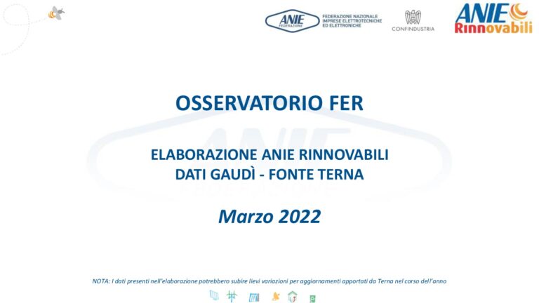 Secondo l’Osservatorio FER realizzato da ANIE Rinnovabili, associazione di ANIE Federazione, sulla base dei dati Gaudì di Terna, nei primi tre mesi del 2022 si registra un totale cumulato di 454 MW di nuova potenza installata (+151% rispetto allo stesso periodo del 2021), così suddiviso: 433 MW per fotovoltaico (+185%), 11 MW per eolico (-52%)…