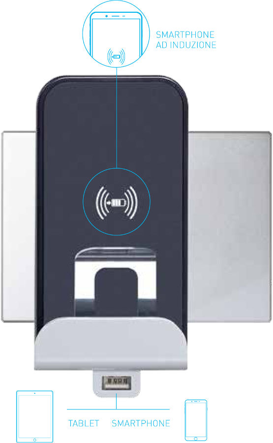 Le linee Axolute e Livinglight di BTicino si dotano di nuove funzioni evolute della gamma Air. Tra queste i caricatori USB, anche a induzione (in foto), che costituiscono un’alternativa al tradizionale caricabatteria; e le prese flat a standard italiano/tedesco (da 10 e 16 A) che garantiscono la totale planarità al punto presa e maggiori pulizia…