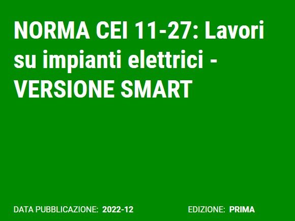 Pubblicate le versioni Smart Standard PDF delle Norme CEI 64-8 Parte 4 “Prescrizioni per la sicurezza”, 64-8 Parte 5 “Scelta ed installazione dei componenti elettrici” e 11-27 “Lavori su impianti elettrici”. Il CEI – Comitato Elettrotecnico Italiano ha pubblicato le prime versioni “Smart Standard PDF” di alcuni importanti norme per supportare l’utente nella lettura e…