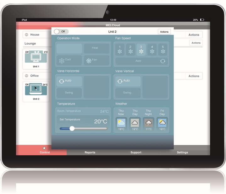MELCloud è il sistema di controllo wi-fi basato su Cloud Computing di Mitsubishi Electric che permette di gestire e programmare il funzionamento dell’impianto di climatizzazione attraverso un’app. In questo modo gli utenti possono programmare i climatizzatori o le pompe di calore con smartphone o tablet, sia quando sono fuori casa o comodamente seduti sul divano.…