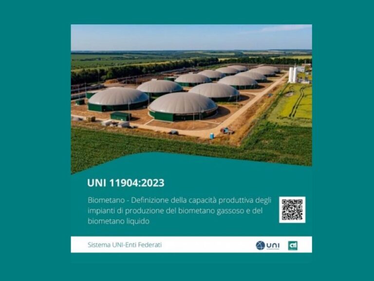 Pubblicata a catalogo la UNI 11904:2023 dal titolo “Biometano – Definizione della capacità produttiva degli impianti di produzione del biometano gassoso e del biometano liquido”. Pubblicata sul sito dell’UNI la nuova UNI 11904:2023 dal titolo “Biometano – Definizione della capacità produttiva degli impianti di produzione del biometano gassoso e del biometano liquido”. La nuova norma – elaborata dalla CT 284 “Biogas…