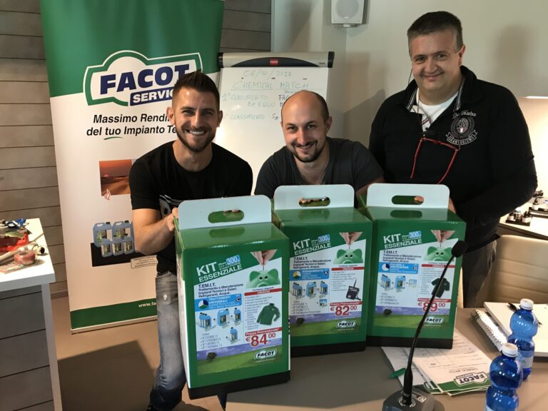 Facot Chemicals (Capralba, CR) per la linea T.EM.I.T. (Trattamento e Manutenzione Impianti Termici e Solari, Refrigeranti, Acqua) presenta il Kit 80-120 Salvaimpianto. Il Kit 80-120 è stato studiato appositamente per trattare fino a 120 litri di impianto termico e garantisce la massima e continua protezione dei circuiti sanitario e di riscaldamento prolungando la vita di…