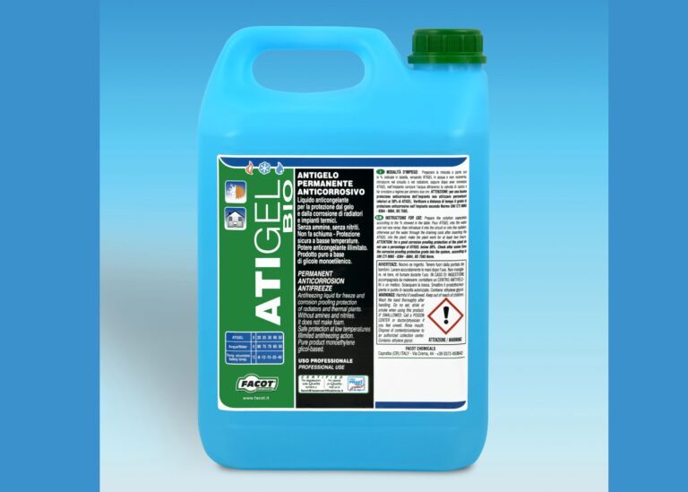 Atigel Bio di Facot Chemicals è un anticongelante di nuova generazione totalmente biologico, a base di Glicole Etilenico stabilizzato e biologicamente inibito tramite sali inibitori di natura organica. Formulato per garantire un’azione anticorrosiva più resistente nel tempo e maggiormente mirata alla protezione delle leghe leggere, è ideale per impianti termici e circuiti di raffreddamento dei…