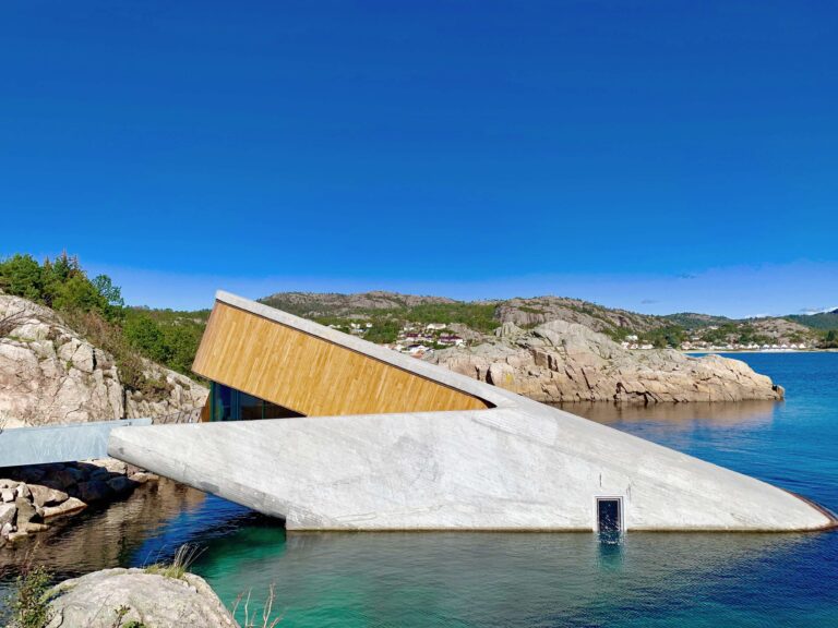 A Lindesnes, nel punto più a sud della costa norvegese, una struttura dalla forma monolitica di 34 metri si immerge per metà nelle acque del Mare del Nord. Questo edificio, che ricorda un periscopio, è il primo ristorante subacqueo d’Europa, l’Under. Qui i clienti possono cenare a cinque metri di profondità sotto la superficie del…