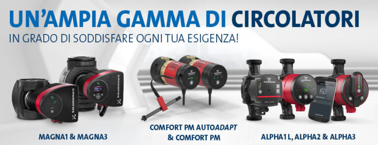 Nuova campagna riscaldamento per i circolatori Grundfos Dal primo settembre è partita la nuova campagna di riscaldamento firmata Grundfos. Un portafoglio completo di circolatori ad elevata efficienza. Grundfos offre molteplici soluzioni: • I circolatori delle gamme MAGNA1 e MAGNA3 ad elevata efficienza e dalla tecnologia intelligente. • La gamma COMFORT per il ricircolo di acqua…