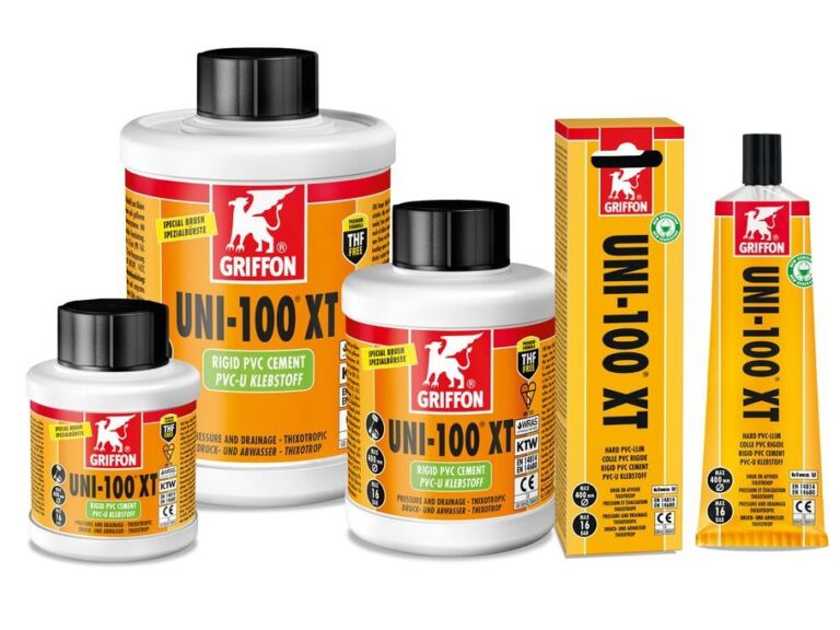 Griffon introduce sul mercato italiano un altro adesivo privo di THF. Accanto alla gamma Griffon PVC Gel, anch’essa priva di THF, arriva la nuova gamma Griffon UNI-100 XT. Griffon UNI-100 XT è una colla tixotropica (non cola) senza per PVC rigido, per l’incollaggio di tubi, manicotti e raccordi. Si adatta anche a giunzioni non perfettamente…