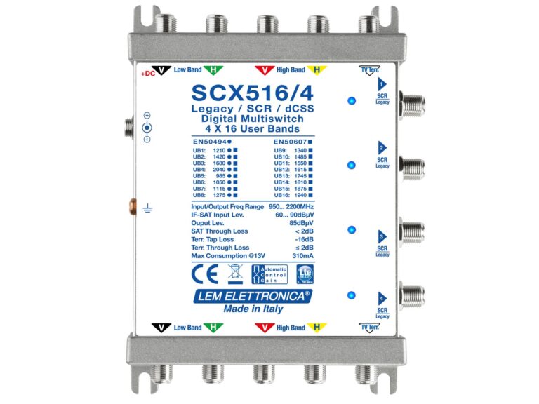 LEM Elettronica (Desenzano del Garda, BS) progetta e realizza un’ampia scelta di multiswitch per la distribuzione collettiva dei segnali satellitari. La gamma si articola dai più semplici modelli Legacy ai più sofisticati e versatili ibridi dCSS compatibili con qualsiasi decoder satellitare presente sul mercato, sia questo Legacy, SCR o dCSS, compreso l’innovativo Sky Q recentemente…
