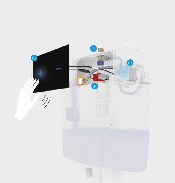 Oli di Casto (BS) propone Hidroboost, la tecnologia che genera autonomamente l’energia elettrica necessaria al funzionamento della placca elettronica. Il sistema doppio scarico touch free della placca avviene tramite sensori capacitivi azionabili con l’avvicinarsi della mano. Con un assorbimento di soli 3,3 mW, l’energia prodotta dal sistema è 38 volte superiore rispetto al consumo medio…