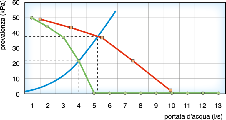 Questa affermazione fondamentalmente è vera, ma nella realtà impiantistica la situazione cambia. In effetti, se ad una pompa ne viene affiancata un’altra perché la sua portata risulta scarsa per il circuito in cui essa è inserita, il complesso costituito dalle due pompe si comporta come una sola pompa “equivalente” la cui curva è diversa da…