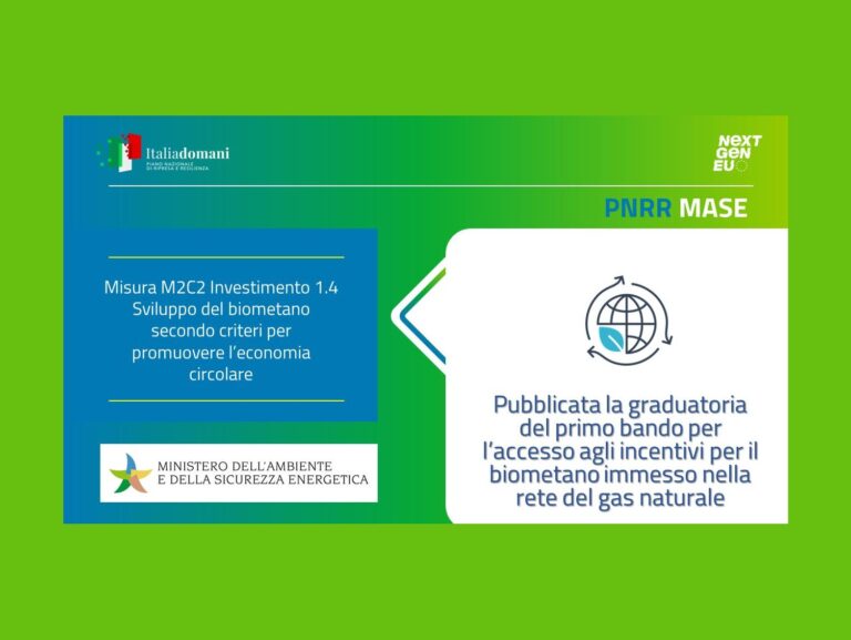 È stata pubblicata sul sito del GSE, nell’ambito della Misura M2C2, Investimento 1.4 del PNRR “Sviluppo del biometano secondo criteri per promuovere l’economia circolare”, la graduatoria relativa alla prima procedura competitiva per l’accesso agli incentivi finalizzati a supportare la realizzazione di nuovi impianti per la produzione di biometano e la riconversione a biometano di impianti…