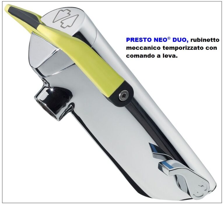 “PRESTO NEO® DUO” è il nome di una nuova generazione di rubinetti temporizzati: comando innovativo, leva colorata, design moderno, facilità d’uso e manutenzione. PRESTO NEO DUO è l’ultimo prodotto introdotto nel proprio catalogo da PRESTO, azienda leader nel settore della rubinetteria temporizzata per collettività. Dal design elegante e moderno è un prodotto destinato a cambiare…