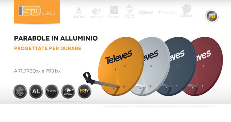 La gamma di parabole presentata da Televes (Bettola-Zeloforamagno, MI) è fabbricata in alluminio e acciaio per garantire una maggiore protezione contro la ruggine e la salsedine. Gli accessori, il supporto LNB sono stati fabbricati con polimeri particolari utilizzati in settori altamente specializzati, rinforzati con fiberglass a garanzia di una più lunga durata. Il nuovo design della…