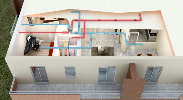 La ventilazione meccanica controllata con recupero del calore consiste nell’eliminare l’aria viziata in ambiente mediante l’estrazione forzata dai locali cosiddetti “viziati” (es. bagni, cucina, lavanderia etc.) e di introdurre aria di rinnovo unicamente nei locali “nobili” (es. camere, soggiorni, studio, etc.). I 2 flussi d’aria sono preventivamente filtrati, non vengono a contatto tra loro, s’incrociano…