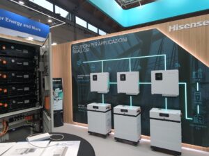 Per le applicazioni Small C&I (commerciali e industriali di piccola scala), Hisense ha proposto una gamma di inverter ibridi trifase abbinati a batterie ad alta tensione.