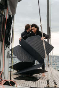 Siamo appassionati di vela e camper, e nei nostri viaggi abbiamo sempre sentito il bisogno di generare energia pulita in uno spazio limitato. Mentre viaggiavamo abbiamo provato a installare moduli solari sia sul camper sia sulla barca, ma avevamo bisogno di produrre energia pulita in formato portatile».