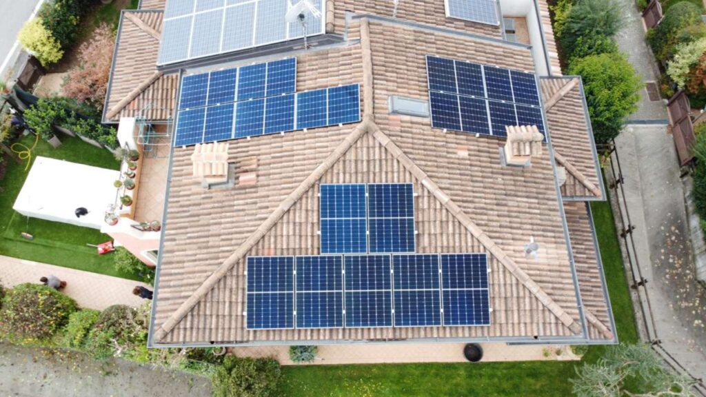 Per sfruttare al meglio l’originale struttura del tetto, composta da tre distinte falde, è stato selezionato l’inverter ibrido monofase Sunny Boy Smart Energy 6.0 dotato di tre inseguitori MPP (Maximum Power Point) per ottimizzare la produzione su tetti con orientamenti diversi. Ideale per il collegamento con sistemi energetici domestici, pompe di calore e stazioni di ricarica per veicoli elettrici, questo inverter garantisce un elevato rendimento, una potenza di carica fino a 10 kW e un rapporto DC/AC fino al 200%. Si stima che l’impianto coprirà circa il 78% del fabbisogno energetico annuo, raggiungendo una potenza di 7,04 kWp.