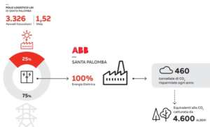 Come tutti i siti ABB in Italia, l’energia elettrica utilizzata per alimentare l’impianto di Santa Palomba viene acquistata da un fornitore nazionale che la produce da fonti rinnovabili. Ma il sito sostituirà una parte di questa fornitura con la produzione locale di energia elettrica da fotovoltaico.